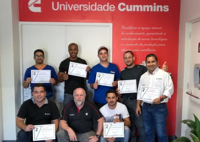 Anderson(左上一)和Jose(右一)在巴西康明斯获得QSL9.3讲师证书